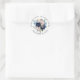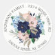Adesivo de etiqueta de endereço redondo exclusivo com um lindo buquê de flores azuis-marinho e rosa bege.
