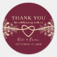 Diga obrigado com estilo com este adesivo de casamento redondo elegante com acentos florais dourados e um design de coração romântico. Perfeito para selar sacolas de favores ou envelopes na sua celebração borgonha e dourada.