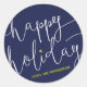 Um design com script moderno que desejava feriados felizes em uma paleta de cores brilhante amarela e marinho. Personalize esta design com seu nome para torná-la sua. A cor vermelha de fundo também é facilmente alterada nas configurações de "Personalizá-la"!