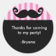 Adesivo de festa de aniversário MUSTACHE Pink Stripe Preto. Personalize com qualquer texto.