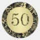 Damasco floral de ouro sobre um adesivo de Festa de aniversário preto de fundo 50