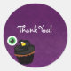 Adesivo de festa de Cupcake de Halloween em Damask Roxo. Personalize com qualquer texto. Itens correspondentes disponíveis.