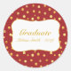 Lindas bolinhas douradas em um adesivo de graduada com fundo burgundy. O texto está pronto para ser personalizado.