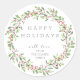 O design apresenta uma grinalda de azevinho em aquarela. Feliz Natal está escrito em tipografia cinza moderna. Personalize este adesivo com seu próprio texto.