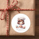 Adesivo personalizado de padaria moderna assado com amor. Garota de padaria fofa chef segurando um delicioso bolo de morango glaçado.