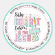 Este adesivo de Páscoa vibrante e festivo apresenta um design divertido com o texto "Coelho Bobo a Páscoa é para Jesus" em letras coloridas e padronizadas. A palavra "COELHO" é decorada com orelhas e pés de coelho, enquanto uma cenoura e uma cruz adicionam ao tema da Páscoa. O anel externo do adesivo inclui uma saudação personalizável, tornando-o perfeito para personalizar suas mensagens de Páscoa. O adesivo é bordeado com um contorno azul-turquesa e rosa, adicionando um toque alegre a qualquer envelope ou pacote.