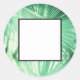 Adesivo elegante em branco com folhas de palmeira verde pálido tropical. Adicione seu texto manuscrito, nomes e data. Uma ótima escolha para todos que amam vibrações positivas, itens personalizados com design personalizado, natureza, yoga, tema tropical, meditação, vibrações verdes, céu, cores alegres, tema orgânico, estilo de vida saudável, praia e verão etc.