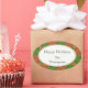 Um elegante presente de Natal ou de férias ou adesivo de assar com guião e letras de blocos de safra e arte de férias vermelha e verde com um elegante padrão vintage fleur de lis restaurado a partir de azulejos antigos.