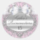 Quinceanera Sticker. Damasco rosa e arco de joia prateada. Zazzle exclusivo. Personalize com seus próprios detalhes. POR FAVOR, OBSERVE todas as imagens planas! Eles não têm prata, arcos, Ouros ou Joias!