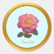 Adesivo redondo azul claro com rosa rosa fofa e moldura dourada. O texto Obrigado pode ser personalizado. Ideal para embrulhar presentes, como suprimento para festas, caixas de favor e para tudo mais. Um detalhe fino de agradecimento que todos vão amar.