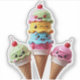 Um doce adesivo com trio de colheres de sorvete empilhadas, cada uma com uma expressão adorável diferente, em um cone clássico. Este design alegre e colorido é perfeito para as vibrações do verão e adiciona um toque bonito a qualquer superfície.