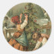 Uma bela ilustração de vintage de duas crianças fora da decoração de uma pequena árvore de Natal.
