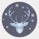 Este adesivo apresenta uma bela silhueta de veados e flocos de neve em tons de azul-céu e ardósia em um fundo azul-marinho. Procure ID861 a ID864 para ver opções de cores adicionais e outros produtos neste conjunto de design de Natal moderno.