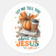 Design cor e agradável com uma cena de outono/outono com um livro aberto, abóbora e café. O texto de inspiração colorido diz: "Deixe-me falar sobre meu Jesus". Esse design está disponível em uma grande variedade de produtos.