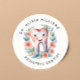 Um adesivo de aquarela moderno, adorável, do dentista pediátrico, com um charmoso logotipo rosa-pincelado e azul, com um dente sorridente cercado por uma coroa floral. Personalize-o com seu nome, título, endereço ou qualquer texto de sua escolha. Este design é perfeito para dentistas pediátricos e consultórios dentários, acrescentando um toque amigável e profissional à sua prática.