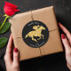 Os adesivos redondos apresentam um falso cavalo de corrida dourado e jóquei em qualquer fundo colorido - mostramos preto. Uma maneira divertida de vestir seus favoritos para festas, decoração de festas, mesa, convites e muito mais. Use para um partido Derby, um chá de panela Derby, uma festa de aniversário ou qualquer ocasião. CORRESPONDENTE a itens na nossa coleção.
