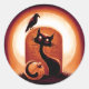 Um pequeno gato de Halloween... com a cauda enrolada em torno de uma abóbora... e um corvo estrelado em uma lápide. Por Paxdomino