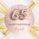 Elegante, clássico, glamouroso e feminino para uma 65ª festa de aniversário. Rosa ouro e cor-de-rosa-claro, fundo gradiente. Decorado com rosa dourado, pingos cor-de-rosa, aparência de pingar tinta. Personalize e adicione um nome. Com o texto: Parabéns. O texto é escrito com um moderno e escuro estilo escrito à mão, com rosa. O número 65 é escrito com uma fonte no estilo do balão.