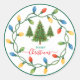 Design de Natal festivo com árvores decoradas e uma corda-luz brilhante cercada de texto "Feliz Natal". Feriado, alegre, sazonal, brilhante, decorativo, alegre, celebração de inverno.