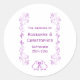 Design do noivo de cor púrpura. Você pode personalizar este adesivo de casamentos cor roxa com seus próprios detalhes de casamento. Se precisar de ajuda para personalizar, entre em contato conosco através do link desta página. Vinheta de casamento de cor roxa personalizada com design de rolagem