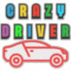 Trabalho de arte gráfico vibrante mostrando texto colorido lendo 'Driver maluco' acima de um carro vermelho estilizado. Perfeito para design conceitual ou ilustrações com temas de condução humorísticos.