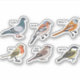 Design com seis tipos de aves pequenas no estilo belo de ilustração colorida. Perfeito em adesivos, disponível em outras mercadorias.