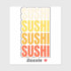 Simples design de texto colorido com o texto "Sushi, Sushi, Sushi, Sushi" em cor bege, amarela, laranja e vermelha
