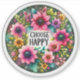 Um arranjo circular vibrante de flores coloridas envolve uma mensagem ousada defendendo a felicidade. As intrincadas pétalas e o exuberante verde criam uma atmosfera elevadora, fazer-a como um lembrete perfeito para abraçar a alegria e a positividade na vida cotidiana.
