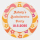 Este é um adesivo personalizado para festa de despedida de solteira retrô floral groovy com flores retrô muito fofas em ondas abstratas groovy em rosa, laranja, amarelo e roxo. você pode alterá-lo e torná-lo seu usando o modelo personalizável.