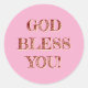 “Deus Abençoe Você” Adesivo Redondo Rosa Suave. Saudação Cristã em fundo rosa. Personalize alterando a Cor do Fundo com o botão ‘Editar Design’. Aproveite!