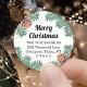 Adicione um toque de acabamento de na moda aos envelopes de cartão de feriado com essas etiquetas de endereço de retorno redondas de feriado modernas. Todo o texto sobre esta modelo é simples de personalizar para incluir qualquer texto, como Feliz Natal, Feliz Férias, Saudações de Seasons, Cheers de Ano Novo, etc. Como opção, altere a tipografia do script para o nome da família e use o restante somente para o endereço. Design apresenta um caligrafia festiva de pinheiros com aquarelas e uma caligrafia de guião em fundo branco. Perfeito para cartões de Natal e convites para festas de férias.