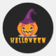 Este é um adesivo redondo mostrado com uma impressão de abóboras assombrando o Halloween. Você pode personalizar este adesivo.