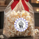Um adesivo moderno em favor gráfico com uma bolsa de pipoca em linha, espero que você tenha um Dia de os namorados de pipoca em preto moderno.