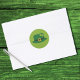 Este adesivo tem um chapéu verde giro com uma banda verde escura e uma fivela de ouro. No canto superior direito estão os pântanos. A cor de fundo é verde. Os adesivos são um toque especial de acabamento em envelopes, pacotes, calendários, álbuns e itens pessoais. As cores incluem caramelo, pinegreen, verde, preto, cinza, ouro, darkforestgreen e olivedrab. Corresponde à Rua da. Patricks Day Kids Activity card da Connie Moore Design.