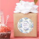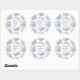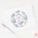 Um adesivo grande e redondo de Dia de as mães feliz é mostrado com um adorável impressão floral azul e roxo. Personalizar ou comprar como está. Impressão de ações freepik.com