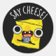 Diga que o Fotógrafo Engraçado de Queijo Pun apresenta uma cunha de queijo fofa pronta para tirar sua foto dizendo "Diga Queijo". Um presente perfeito para a família e amigos que adoram peitos de queijo fofos.