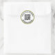 Você pode digitar o URL do seu site para mostrar o código de QR correto. Há duas linhas de texto de exibição em preto que você pode editar para mostrar uma mensagem personalizada. Estes adesivos elegantes têm texto preto num círculo branco que tem uma borda verde-escura e dourada. A borda de ouro falso (e não folha) é uma renderização artística.