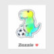 Esboço t-rex bonito jogando futebol. Versão de aquarela digital. Ideia de presente para crianças que amam futebol.