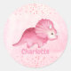 Os adesivos personalizados do Dinossauro Gelado para raparigas. Este design bonitinho tem um dino rosa fofo com o nome do bebê. Use-os em envelopes com convite correspondente ou como selos de sacos de favor.