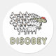 Disobey design apresenta um bando de ovelhas obedientes que obedecem à mais recente diretiva agrícola. Uma ovelha negra pensa por si mesma e escolhe seu próprio caminho. Gráfico divertido para aqueles que não estão com vontade de seguir ordens.