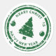 Add a touch of rustic charm to your holiday greetings with this distressed green stamp sticker. The central motif is a classic Christmas tree, encircled by the festive messages 'Merry Christmas' and 'Happy New Year'. Two decorative ornaments flank the tree, enhancing the vintage aesthetic. This versatile sticker is ideal for embellishing mail, packages, or party favors. Its distressed texture and classic design evoke a sense of timeless holiday tradition, making it a wonderful choice for spreading joy and warmth throughout the Christmas season.