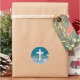 Um simples adesivo de Natal com nome, ocasião e encontro com uma cruz branca. O design das ondas oceânicas destinava-se originalmente ao batismo adulto, mas também era adequado para o batismo criança ou para o Natal.
