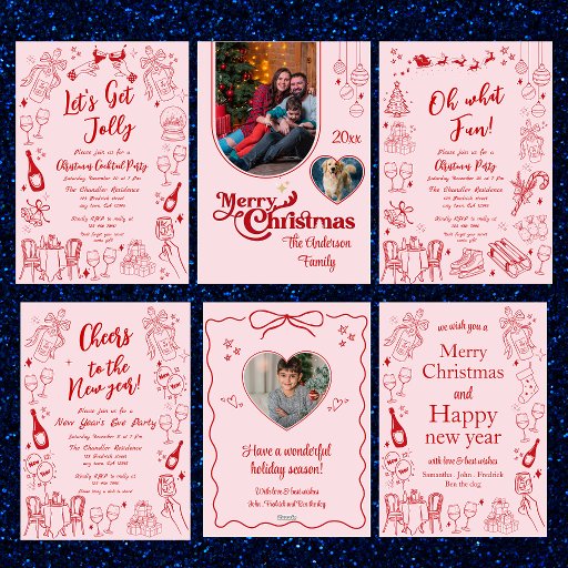 Cute Pink Christmas Quirky Doodle Custom Photo Criado por Mehnaz Parveen
