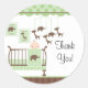 Muito obrigado. Um adesivo de bebê com um quarto de bebê verde e doce com um celular para bebês. Vinheta perfeita para favores de bebês ou envelopes de convite e anúncios de nascimento! Os convites correspondentes, selos postais e notas de agradecimento estão disponíveis no nosso compro em www.celebrateitinvites.com. ©Cocoa Studio