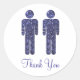 Duas silhuetas de homens com brilho azul com texto que diz Obrigado.