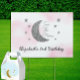 Duas da lua! segundo aniversário com lua prateada e estrelas com fundo de cor rosa