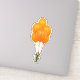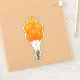 Vinheta-vinil com talão personalizado com imagem de um buquê de balões de laranja amarrados com fitas de laranja e ancorados com um peso de balão embrulhado com folha de ouro com estrelas pretas. Veja toda a coleção do Birthday Sticker nos CONVITES | Seção Stickers & Labels