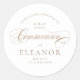 Dourada caligrafia elegante Primeira Comunhão Obrigado O Clássico Round Sticker apresenta uma delicada cruz moderna, aliada ao tipo moderno e ao belo roteiro caligráfico.