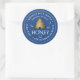 Este rótulo azul tem campos editáveis para cumprir os requisitos listados pelo Conselho Nacional de Mel nos EUA no momento em que este rótulo foi criado; a palavra mel, seu nome comercial, nome pessoal, endereço e peso líquido do mel em gramas e onças deve ser incluída se você vender seu mel. Inclui vintage skep com gradiente de ouro e borda dupla. Conversões de peso líquido de mel comum: 8 oz (227 g), 12 oz (340 g), 16 oz (454 g), 32 oz (907 g), 5 lb (2,27 kg).