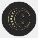 Coloque o seu tema celeste no "Clássico de Casamento da Lua Dourada," contra um fundo preto chic. A lua e as estrelas ouros, complementadas pelas elegantes e simples iniciais personalizáveis do casal, tornam-se um emblema encantador. As fases da lua delicadamente incorporadas acrescentam uma camada de simbolismo, fazer esses adesivos mais do que apenas selos decorativos.